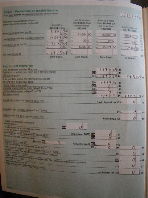 接著… Ontario Tax (表格 ON428,共四面) 這是算給政府看的,算是基本稅務內容,如果你算到最後是有數字的話,表示是你必需繳交的稅,無法退還的。。。。